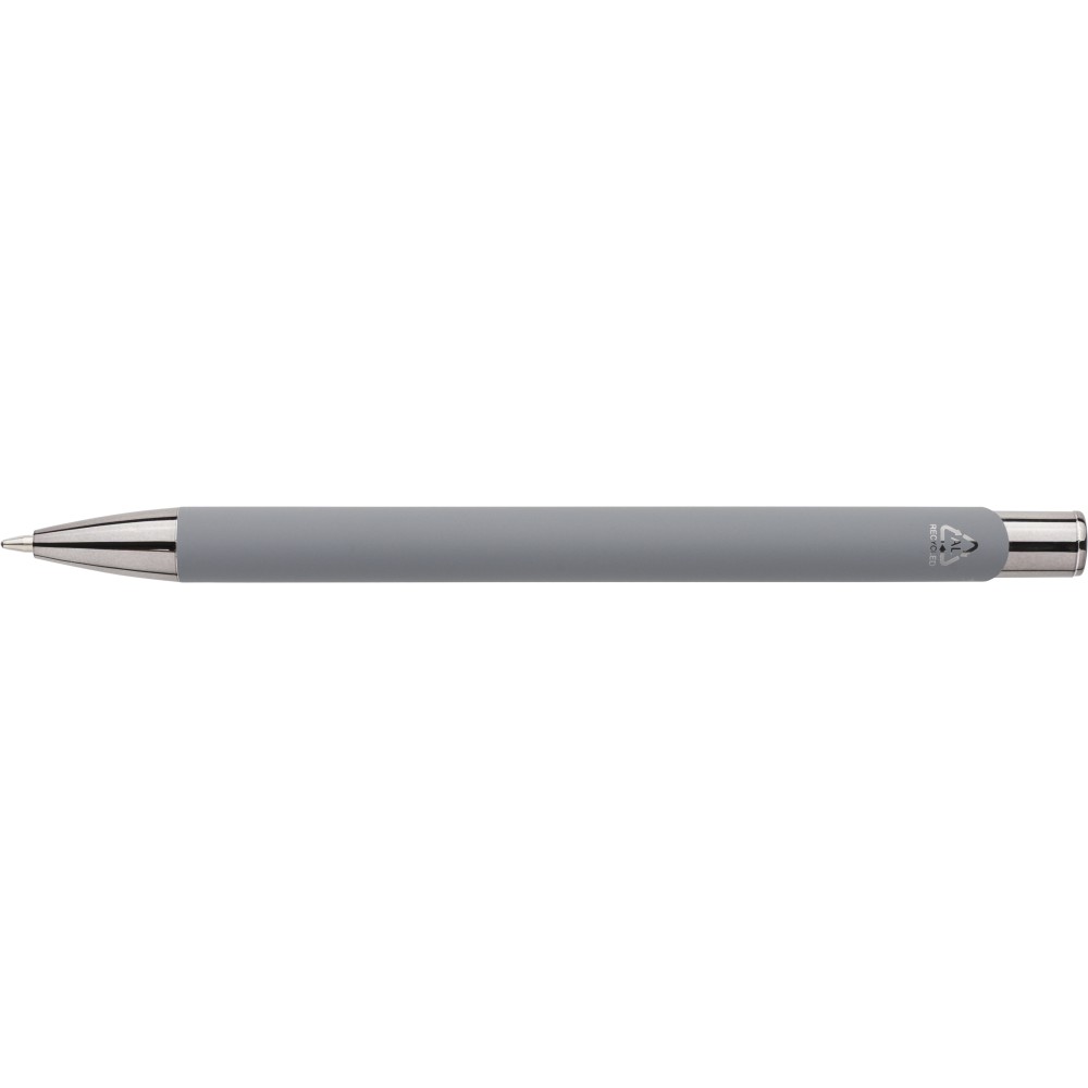 Újrahasznosított alumíniumból készült, gumírozott felületű golyóstoll, a toll színével harmonizáló UV-bevonatú műanyag és fém díszítéssel. Gravírozás után fényes tükörhatás jelenik meg. A tolltesten gravírozott recycled (újrahasznosított) alapanyagra utaló logó található. Megközelítőleg 800 méter íráshosszúságú, kék színű tollbetéttel.